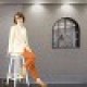 カーディガンを肩に羽織る。